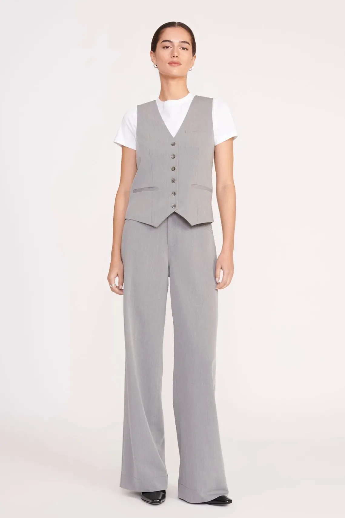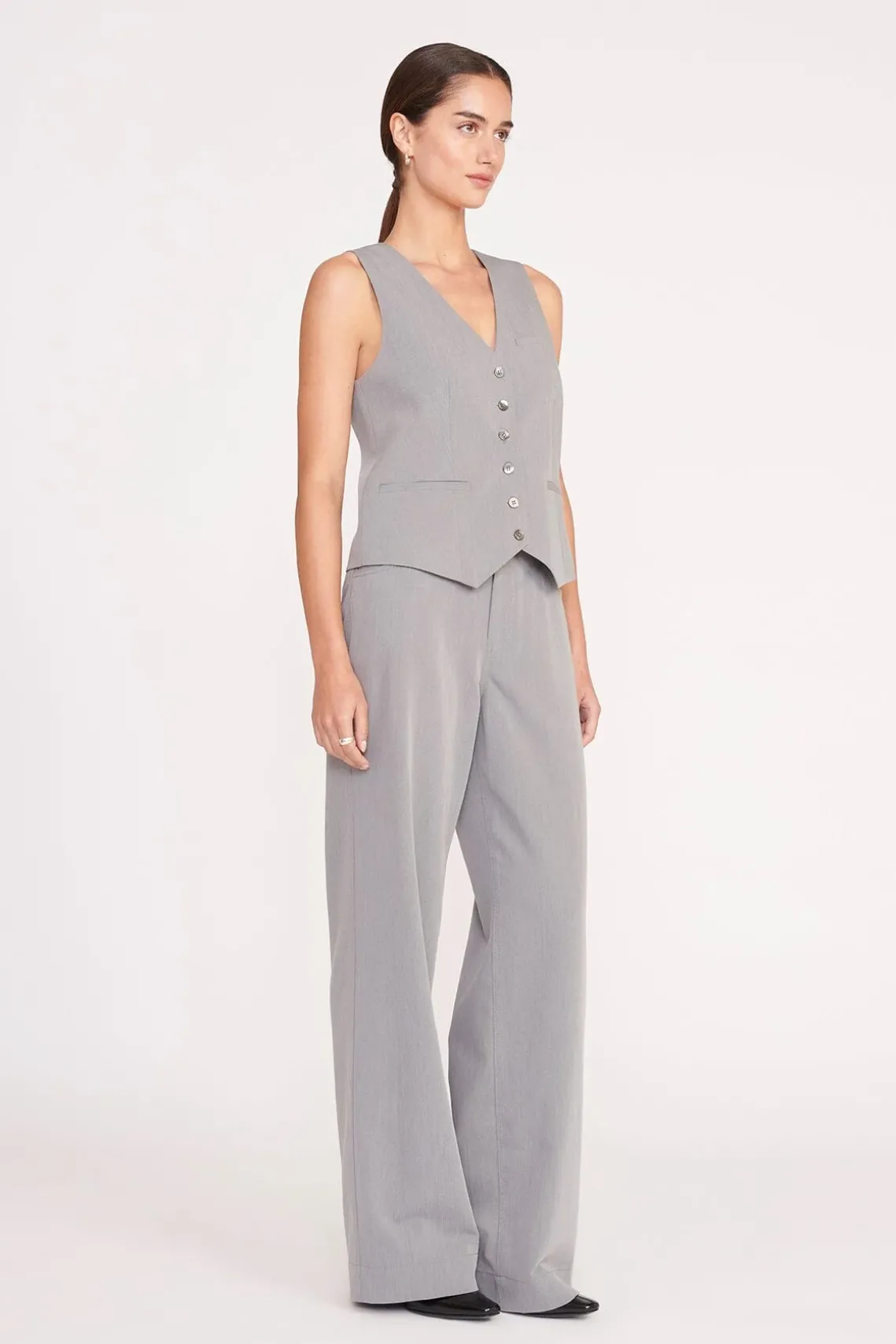 A low rise, wide leg pant crafted from suiting fabric, the Grayson features a 5-pocket design and can be matched back to any of our suiting tops. Pair with the Brett Vest and City Blazer for a coordinating 3-piece suit look.