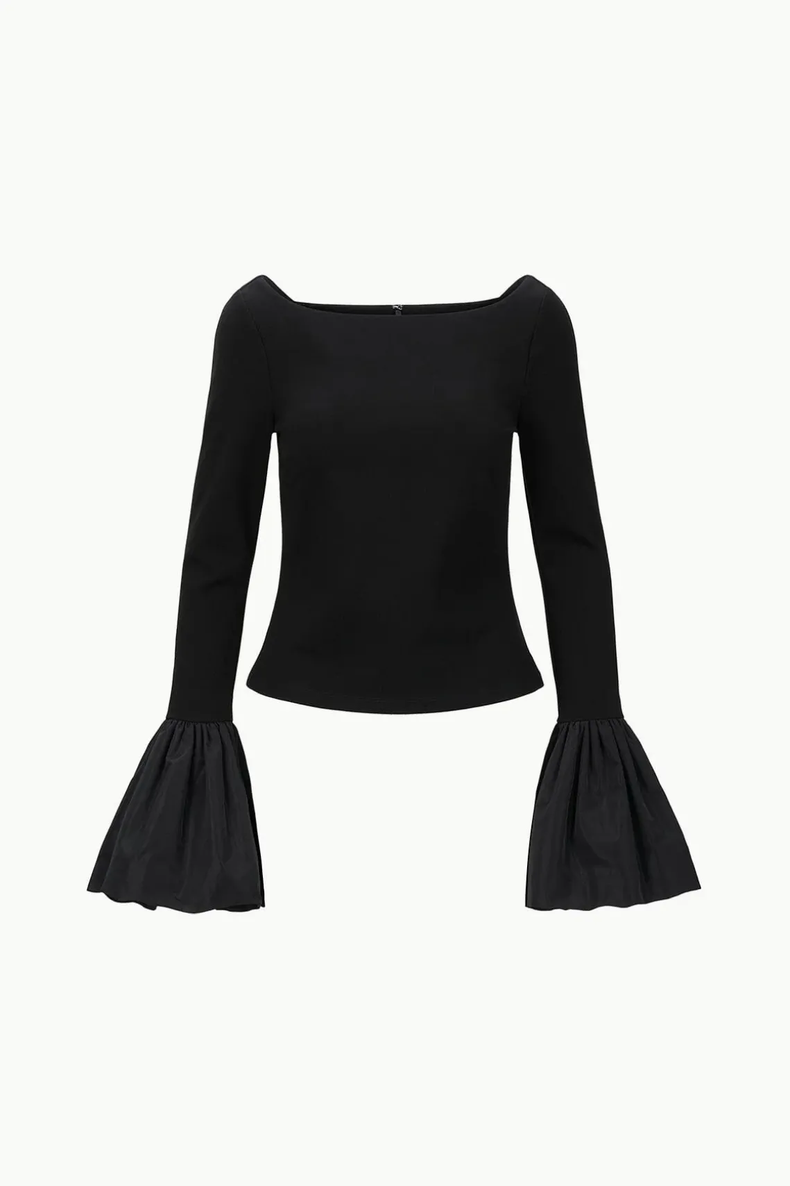 The Paige Top is a festive blouse in our comfortable ponte fabric, with voluminous taffeta bell cuffs. This style pairs with our Presley Pant.