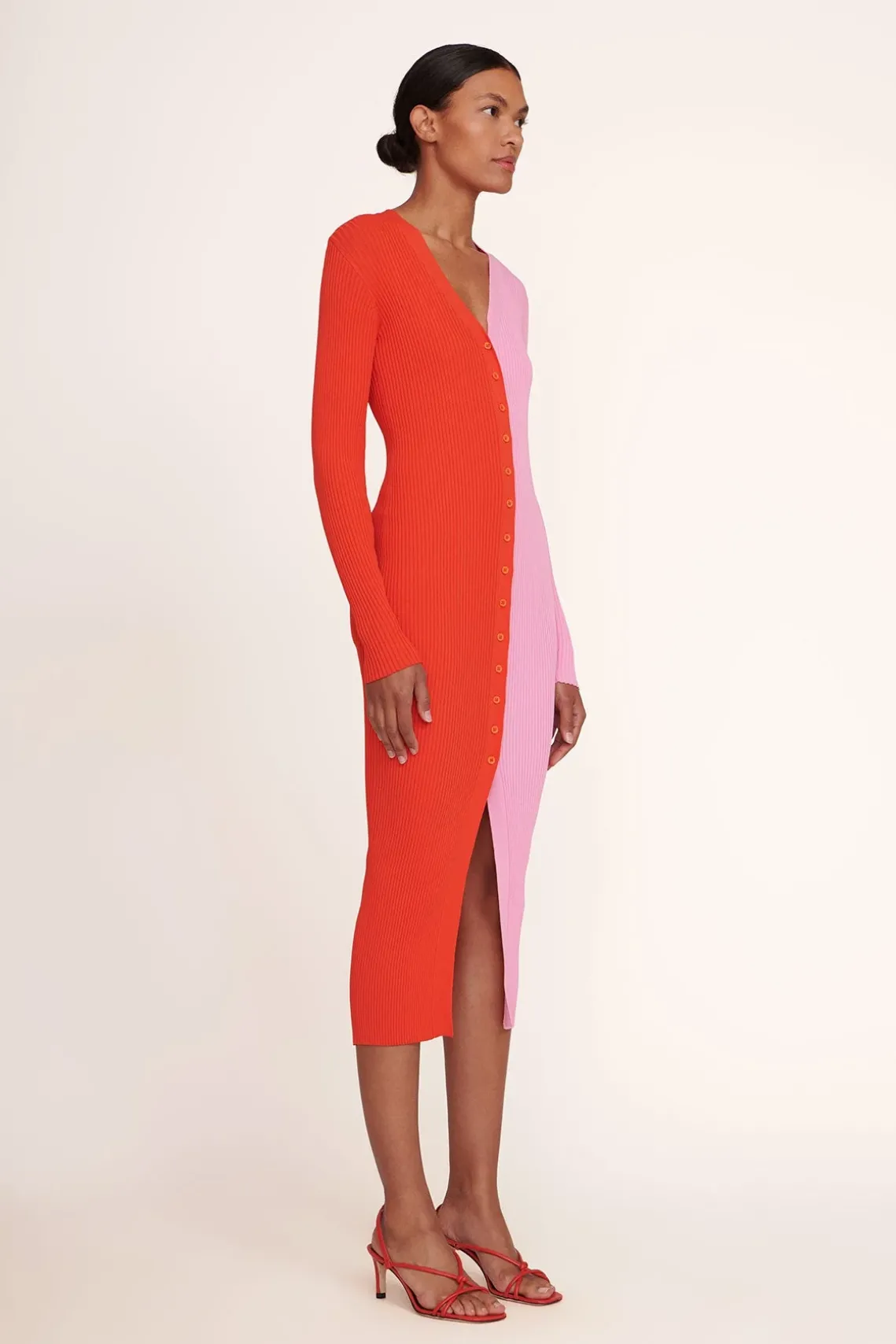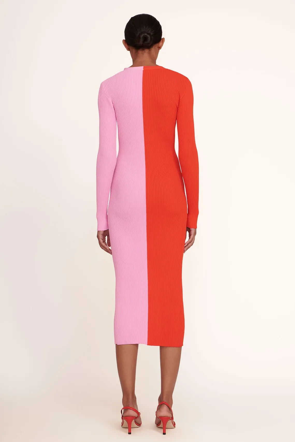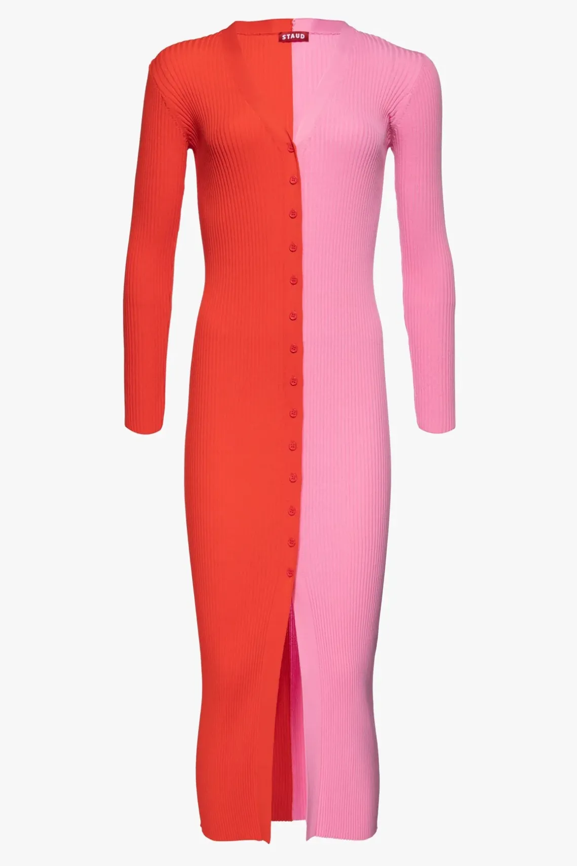 Our signature style, the Shoko Sweater, can be worn as a cardigan or dress. This two-tone style is made out of a stretchy, comfortable compact rib knit fabric