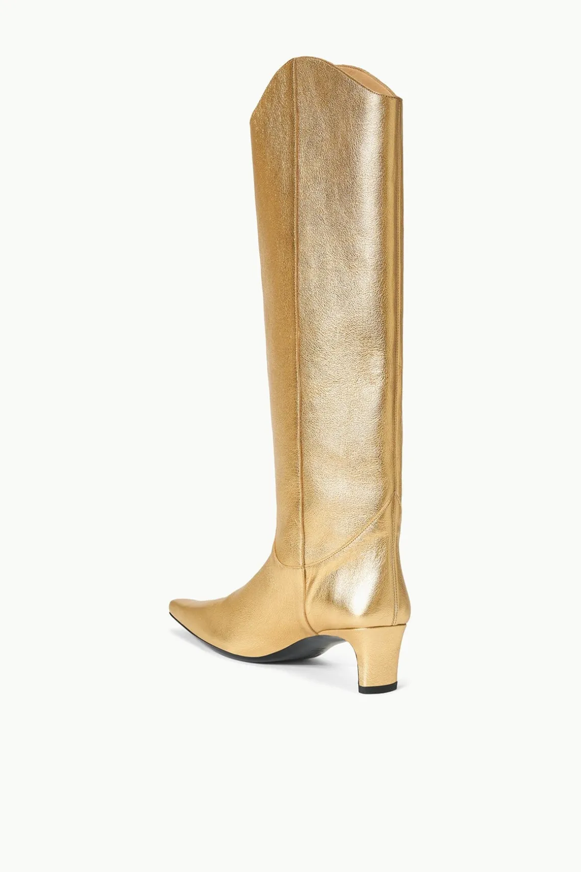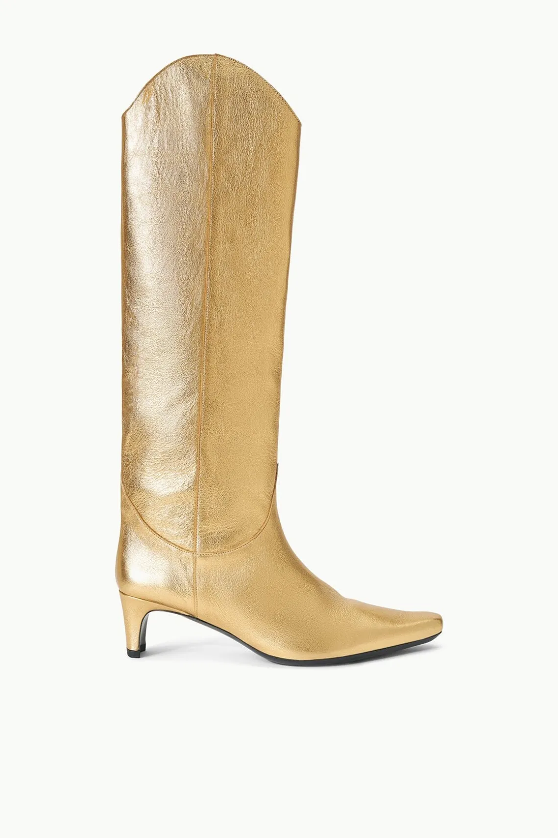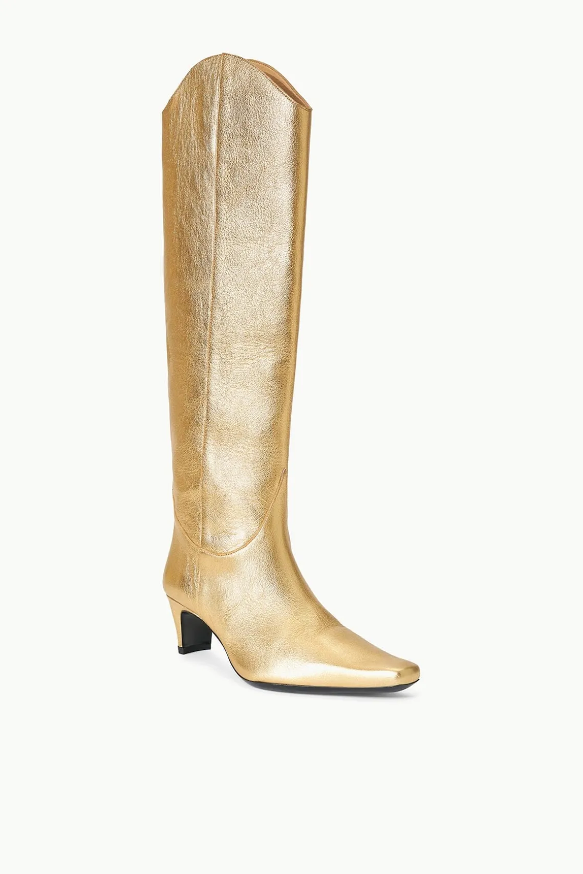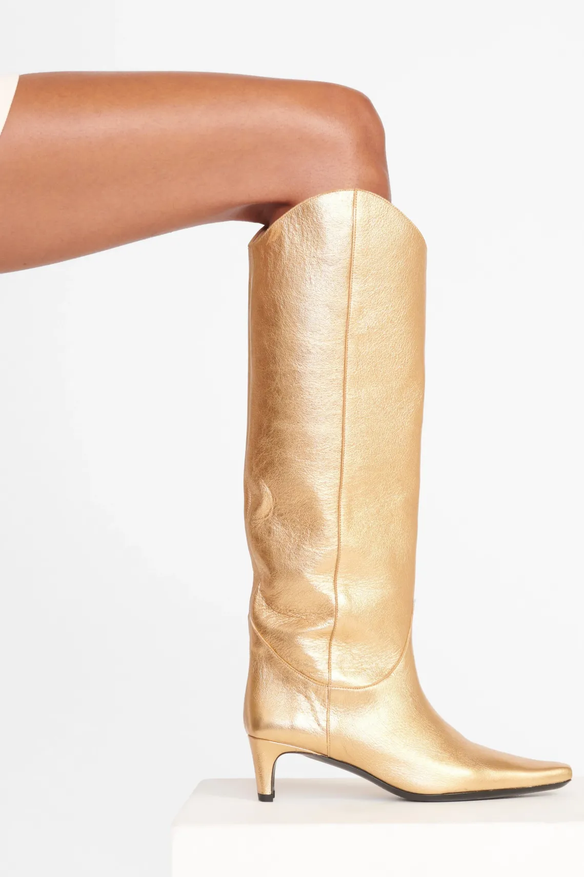 Our signature Wally Boot with a Western inspired curved topline. This style features the classic Wally blade heel and pointed toe.