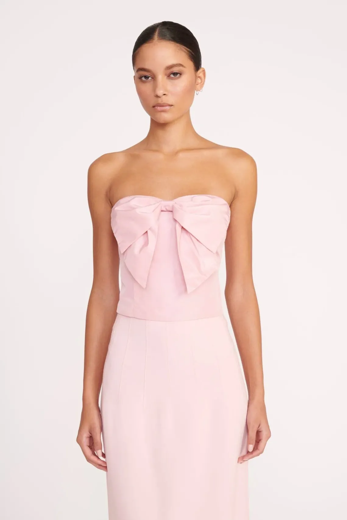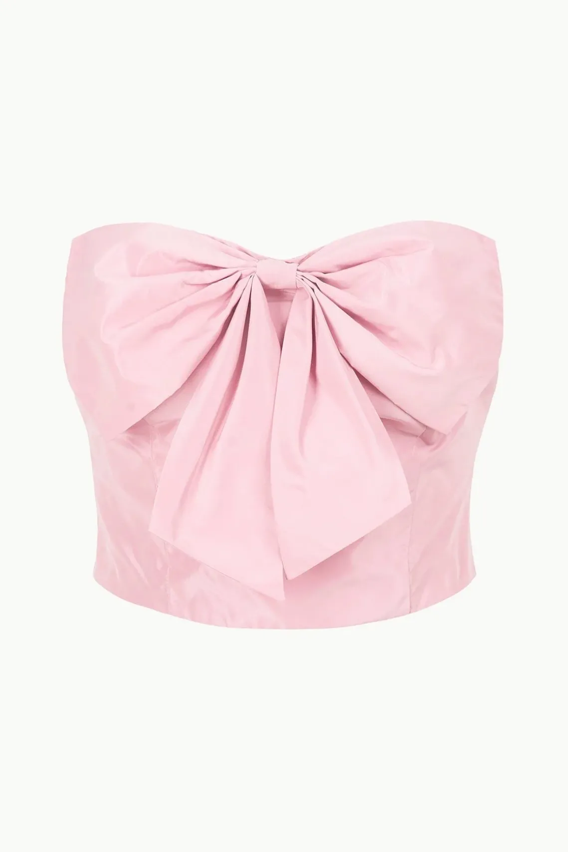 The Atticus Top is a holiday top meant to be dressed up or dressed down. Styled with an oversized bow, this style has a smocked back for comfort and ease of fit, with a zip-up back.