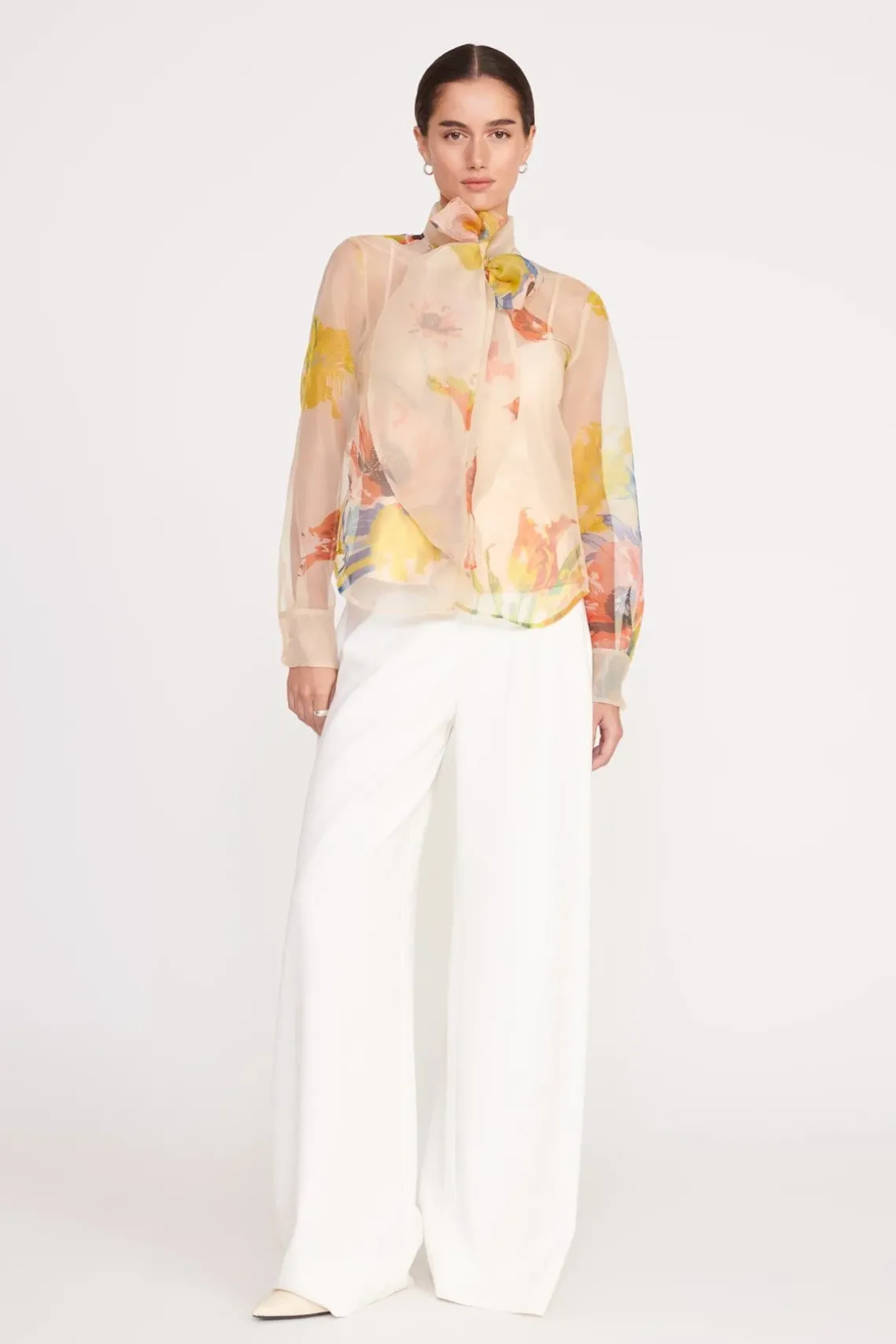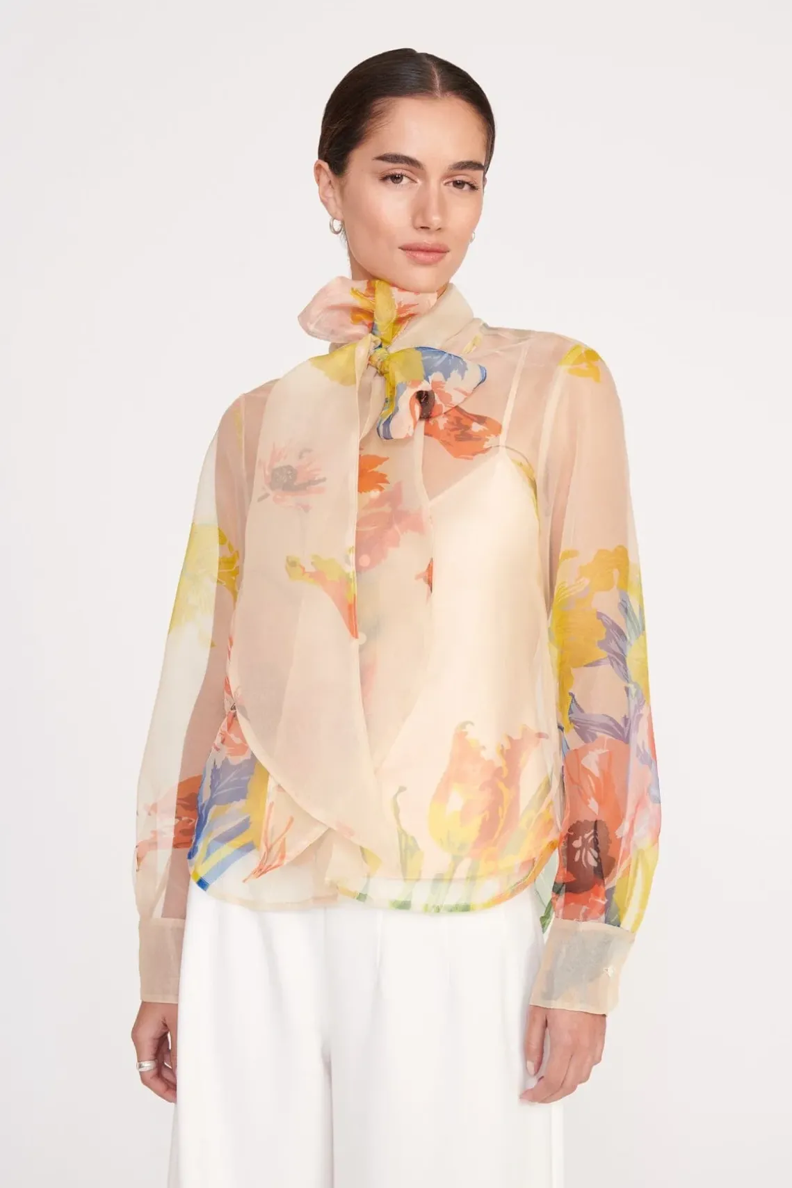 A classic button front blouse, updated with an oversized bow detail at the neck. The Maryn Top can be dressed up or down in our seasonal floral print.