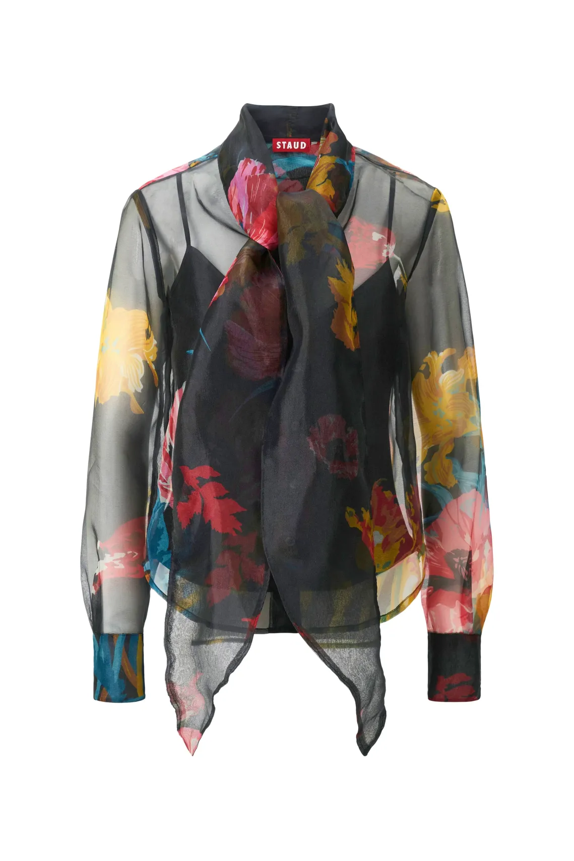 A classic button front blouse, updated with an oversized bow detail at the neck. The Maryn Top can be dressed up or down in our seasonal floral print.