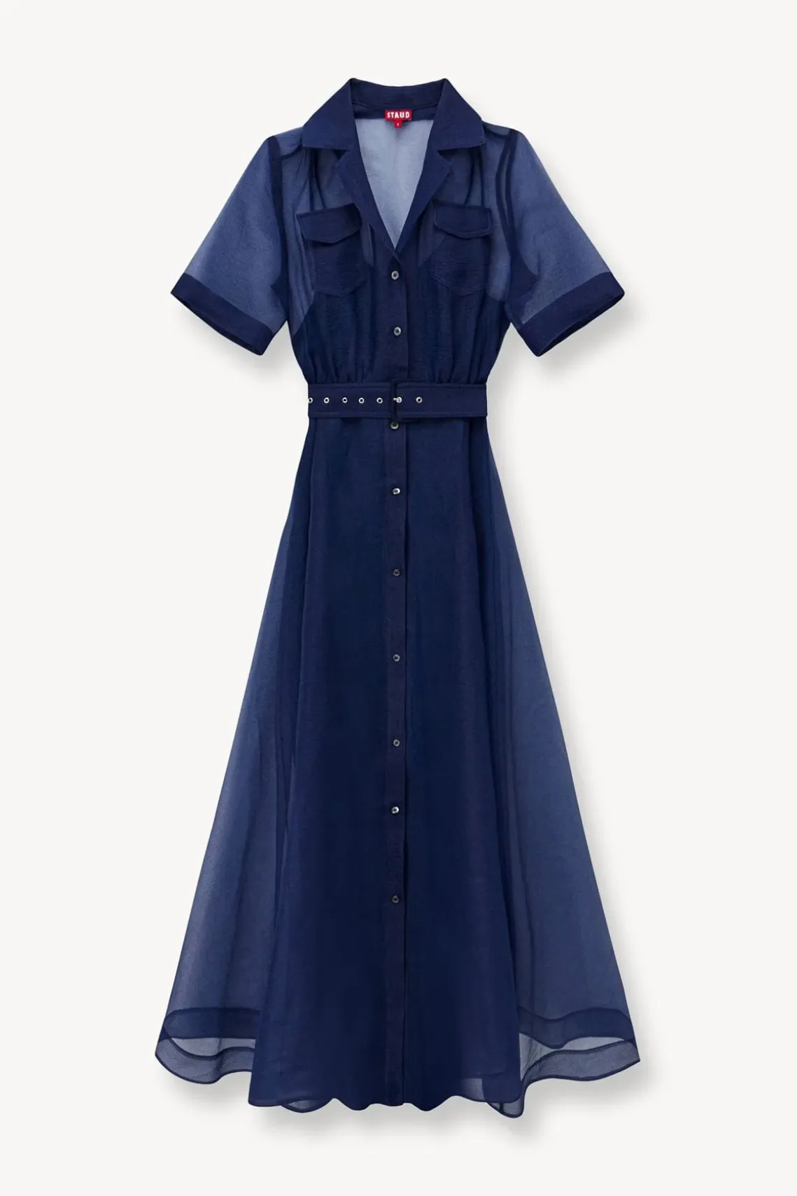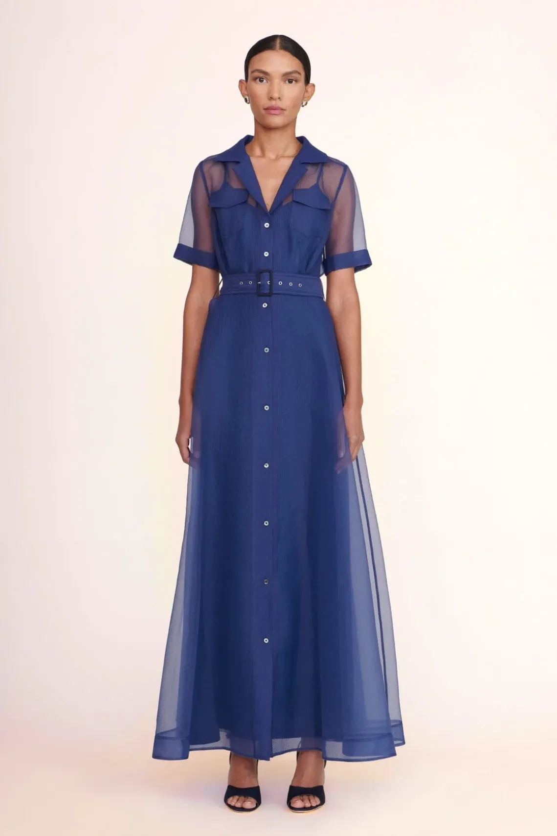 The Millie is a full length dress made out of organza. This dress features a slip, two front pockets, a button down front and matching belt.